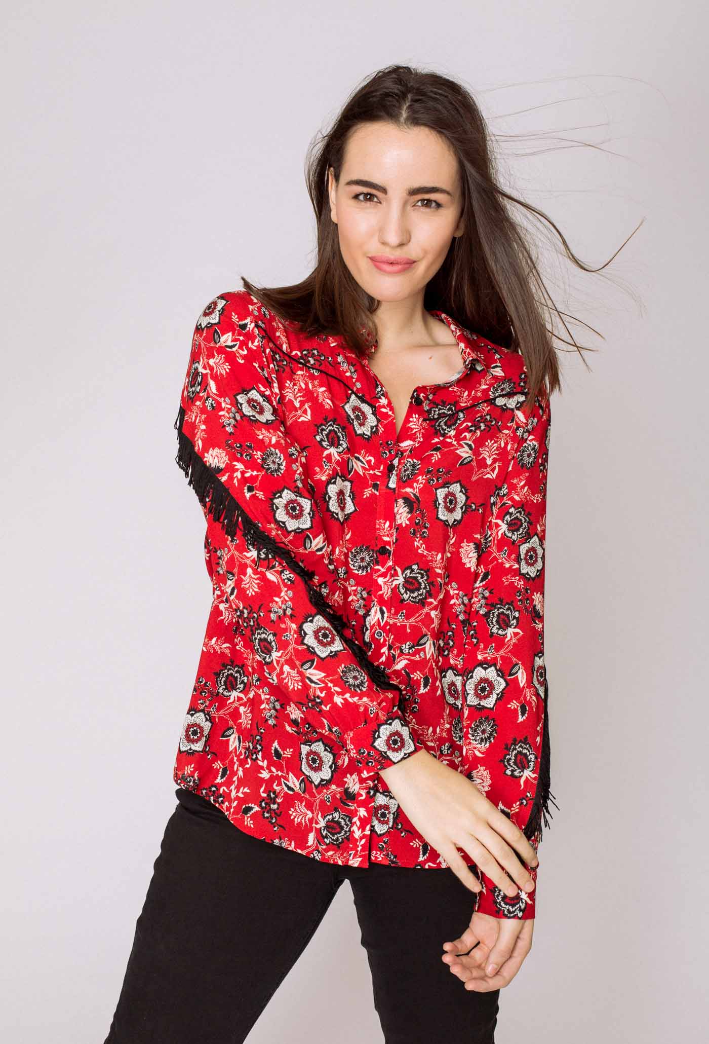 Blusa Diseño Flores Fleco en Mangas